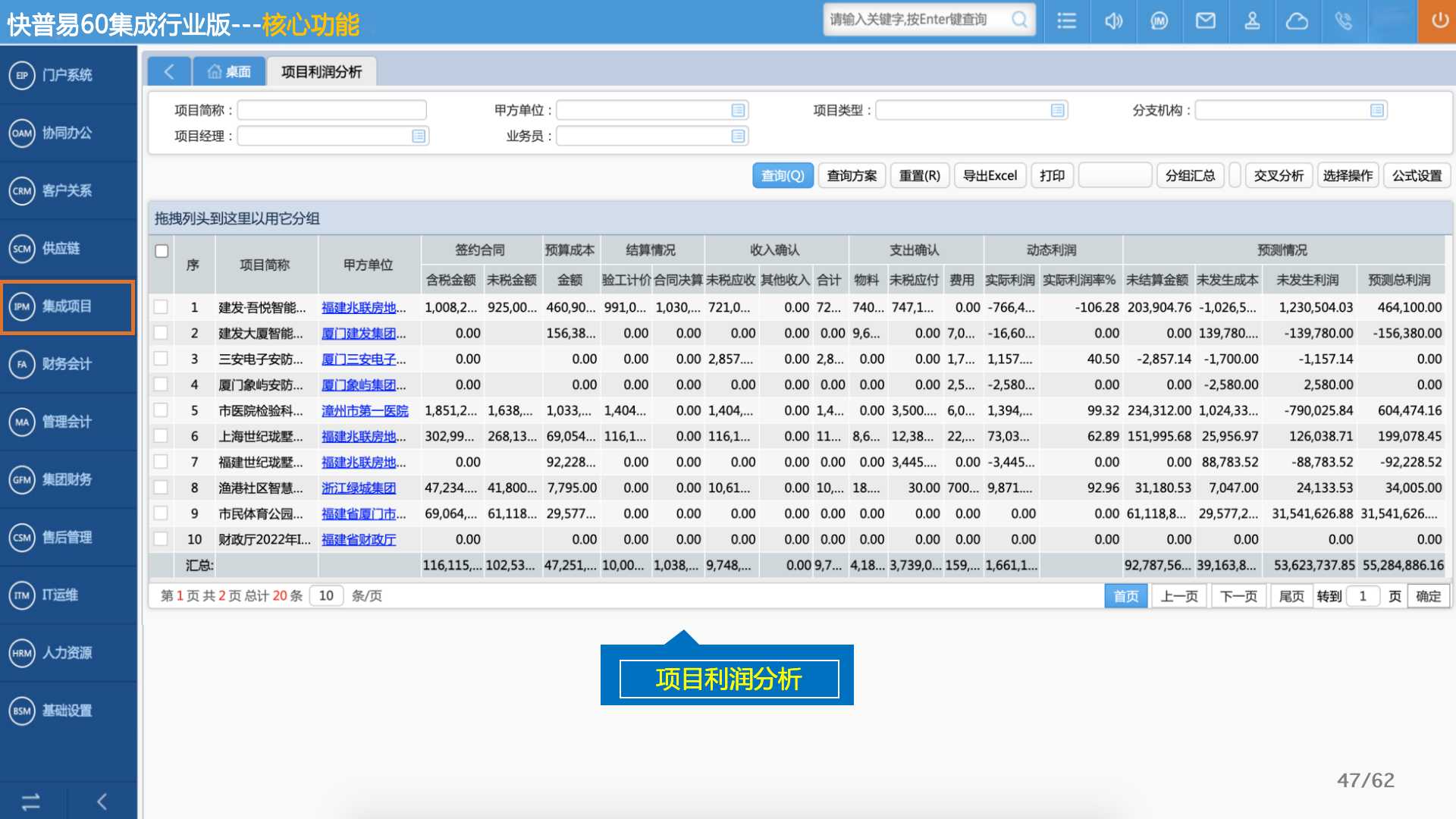 快普易60以客戶(hù)為目標(biāo)、以項(xiàng)目為核心,為集成行業(yè)提供數(shù)字化管理解決方案,為組織和業(yè)務(wù)提效,實(shí)現(xiàn)項(xiàng)目全過(guò)程管控,有效控制成本,并按項(xiàng)目自動(dòng)進(jìn)行內(nèi)部核算,提升項(xiàng)目的盈利能力,為企業(yè)打造可持續(xù)發(fā)展的經(jīng)營(yíng)模式。