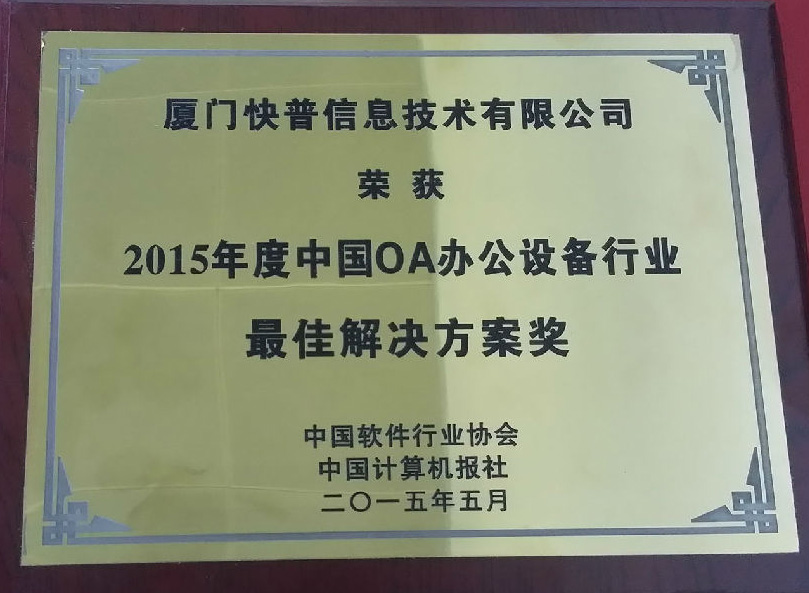 近日,第十九屆中國軟件博覽會在北京展覽館隆重舉行,工業(yè)和信息化部部長苗圩出席并講話,由工業(yè)和信息化部副部長懷進(jìn)鵬主持開幕式。廈門快普作為中國整合管理的倡導(dǎo)者和領(lǐng)導(dǎo)者連續(xù)四年受邀參加軟博會,憑借多年在工程項(xiàng)目領(lǐng)域及OA辦公設(shè)備行業(yè)精耕細(xì)作,在本屆大會上同時(shí)榮獲兩項(xiàng)大獎(jiǎng):“2015年度中國工程項(xiàng)目行業(yè)突出貢獻(xiàn)獎(jiǎng)”和“2015年度中國OA辦公設(shè)備行業(yè)最佳解決方案獎(jiǎng)”!