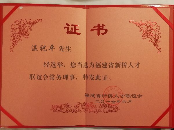 快普董事長溫祝平作為中國企業(yè)管理專家應(yīng)邀出席會議,并當(dāng)選為福建省新僑人才聯(lián)誼會常務(wù)理事。