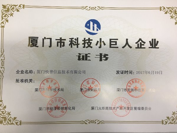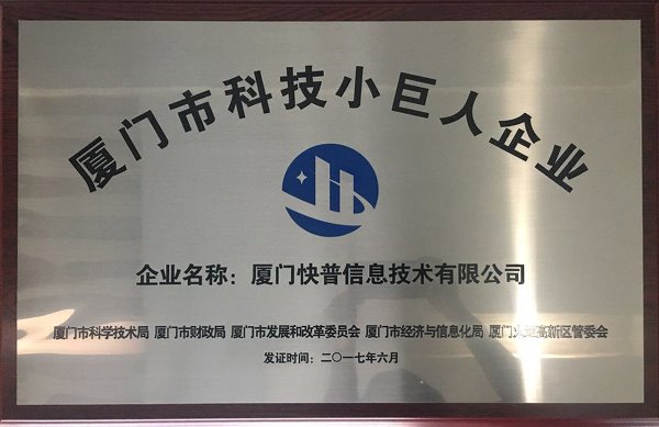近日,福建省科技廳公布2017年科技小巨人企業(yè)名單,廈門快普信息技術(shù)有限公司憑借自身的卓越實(shí)力,在激烈競(jìng)爭(zhēng)中脫穎而出,被授予2017年“廈門市科技小巨人企業(yè)“榮譽(yù)稱號(hào)。
