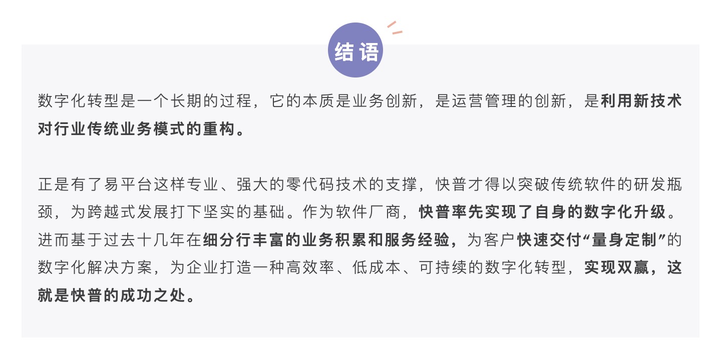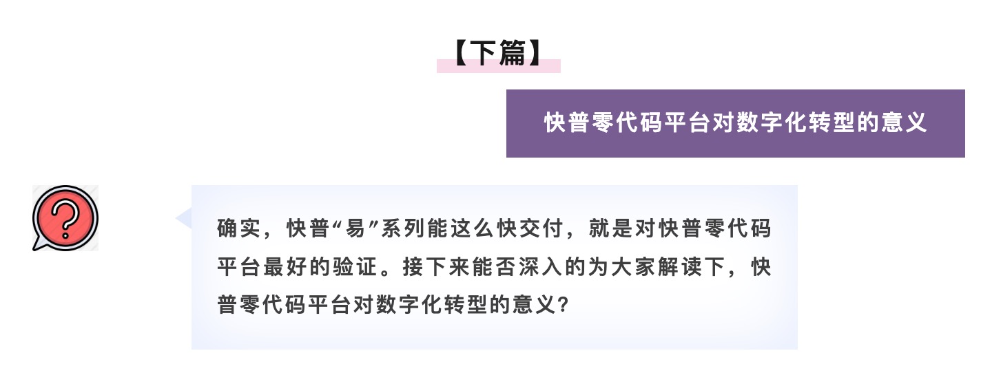 是的,我們可以很自信地說“快普零代碼平臺讓數(shù)字化轉(zhuǎn)型變得簡單、可行”。這個是面對數(shù)字化轉(zhuǎn)型的所有角色而言的,包括我們自身軟件研發(fā)、實施交付,以及合作伙伴、用戶等,易平臺在效率、成本、技術(shù)門檻和可擴(kuò)展性等方面來說都有著顛覆性的突破,是非常有意義和必要的基礎(chǔ)設(shè)施??偨Y(jié)說有下面幾點: