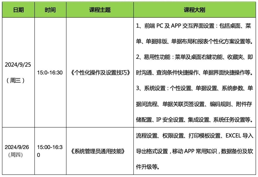 本次培訓采取分級式、系統(tǒng)化的系列培訓,包括基礎夯實、中級進階、高級深化及專題應用四大板塊分別進行,旨在全方位提升系統(tǒng)管理員及關(guān)鍵崗位人員的專業(yè)技能。從基礎操作到高級維護,從日常應用到深度挖掘。除了精彩的課程內(nèi)容外,我們還為參與培訓學員提供持續(xù)的重點支持,包括匯總問題預約遠程會議一對一輔導,解決疑難雜癥,確保培訓成果落地。